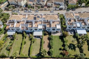 This semi-detached house offers a wonderful combination of space, character, and potential, ideally located within a well-maintained and leafy urbanisation. The property features 3 bedrooms, 2 bathrooms and a guest toilet, distributed across a functional layout. A charming internal patio brings natural light into the home and adds a distinct Andalusian style and atmosphere, creating a warm and inviting feel throughout. One of the standout features is the 250 m² private garden, perfect for outdoor living, entertaining, or creating your own oasis. The storage room in the garage area brings the possibility of adding a 4th bedroom or office to the property. The home also benefits from two balconies: one overlooking the garden and communal areas, and another facing the street with beautiful sea views. In addition, there are two terraces offering 360º panoramic views of the sea and mountains, providing exceptional spaces to relax and enjoy the surroundings at any time of day. The property includes a fully equipped kitchen with the possibility to expand, offering flexibility to adapt the space to your needs. While the house is in good structural condition, it would benefit from some renovation, making it an excellent opportunity to personalise and add value. The urbanisation is known for its lush greenery, with palm trees and well-kept communal areas, including a swimming pool, gym, sauna, and events area. Ideally located within walking distance to Unicorn Racket Club, the American School, Atlas International School, as well as cafés and restaurants, this property offers both convenience and lifestyle. A fantastic opportunity for those seeking a home with character, outdoor space, and strong potential in a prime location.