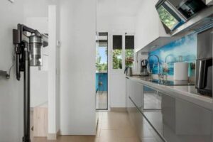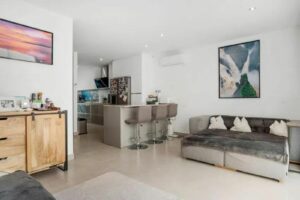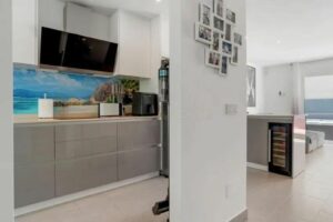 It is a corner unit with only one direct neighbor, which offers greater privacy. The location is unbeatable, the whole center of Estepona is within walking distance, and the property is not subject to expensive community fees.