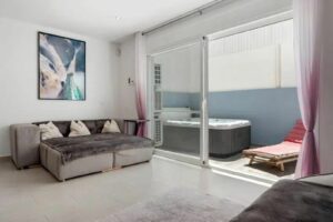 Beautiful modern townhouse built in October 2019, located in a quiet neighborhood in the heart of Estepona. The property has a plot of 84 m² and a built area of 232 m² distributed in three bedrooms + cinema room and two full bathrooms plus a courtesy toilet. Among its outstanding spaces is a home cinema, an outdoor jacuzzi and a bioclimatic pergola ideal for enjoying the Mediterranean climate throughout the year.