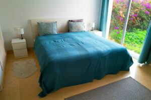 Down the second staircase you reach the 3 bedrooms and 2 bathrooms, 1 bedroom is en suite. By opening the sliding doors you are coming into the garden.