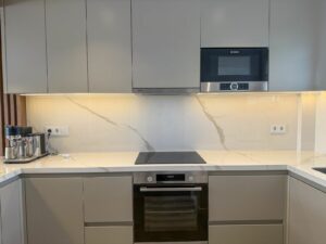 The property has been upgraded with several premium options from the developer, including high-quality tiling and integrated appliances. In addition, the original kitchen has been replaced with a high-end contemporary kitchen that enhances both functionality and design. A bespoke wine bar has also been integrated, creating an elegant feature ideal for entertaining and relaxed evenings at home.