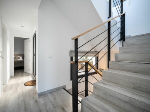 Three large sunny terraces create outdoor living on every level. The internal patio connects the house from top to bottom and brings in natural light. The master bedroom enjoys its own private terrace with open views to the coast and the mountains.