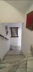 First Floor: Expansive living room with fireplace and air conditioning, flooded with natural light, plus a 20 m² terrace; fully equipped kitchen, guest toilet, and another equally sized entrance terrace – perfect for al fresco dining in the mild climate.