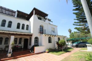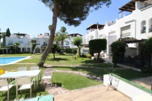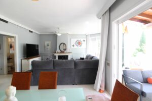 Enjoy the communal garden from the lounge porch! On the first floor are the 3 bedrooms and 2 bathrooms, one of them en suite with shower and large dressing area. New wardrobes in all bedrooms . It is a closed and very well maintained community. The house has several Porches, and huge Solárium with a wooden roof recently put so this new one. Ideal for chill out area and outdoor dinners with barbecue and closed part as well as laundry room. The fantastic panoramic views of the whole wooded area and the mountains of La Quinta. The urbanization is close to everything: Supermarkets, Colleges, Shops, Restaurants etc.. is ideal for Holidays or for families. And perfect to live all year. It has general air conditioning throughout the house and blinds. San Pedro de Alcántara is a 4-minute drive from Puerto Banus. It is for all an ideal house for families and also for investment and enjoy Marnbella with everything next to it;