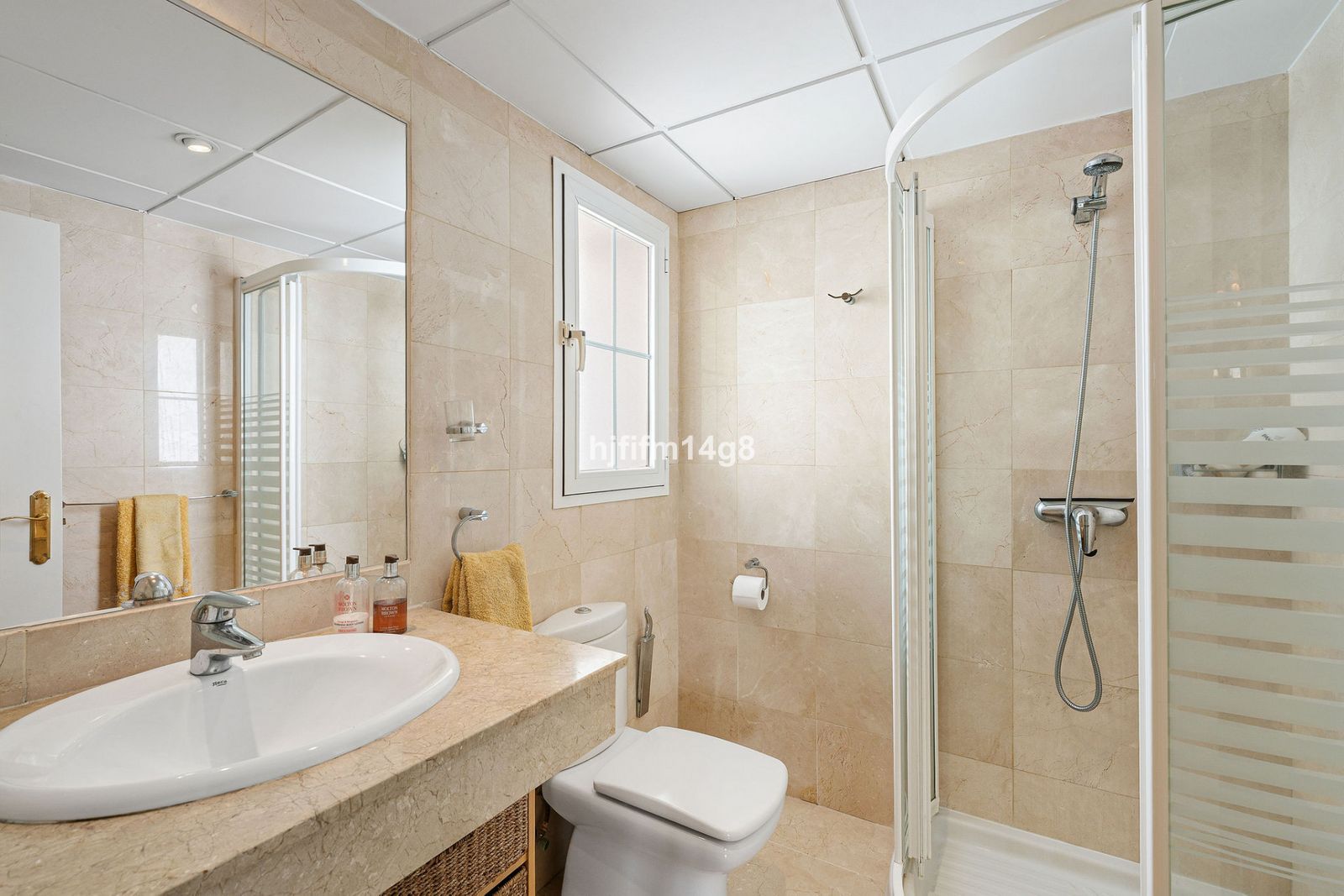 The townhouse is distributed over several levels and offers generous interior and exterior spaces. On the entrance level, you will find a bright and inviting combined living and dining room featuring an open fireplace and direct access to a south-facing terrace, perfect for enjoying Marbella’s year-round sunshine. The fully fitted kitchen is practical and well laid out, complemented by an entrance hall, storage room and a guest toilet on this level.