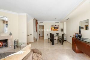 This stunning 3-bedroom townhouse is for sale in the highly sought-after El Alcornoque urbanisation in Nueva Andalucía, one of Marbella’s most prestigious areas. Nestled front line to the renowned Aloha Golf Course, this exclusive development of just 22 units offers privacy, tranquility, and beautifully maintained communal gardens with a refreshing pool.