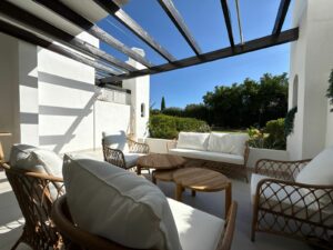 Located in a prestigious gated community in the heart of Nueva Andalucía, this beautifully fully renovated 3-bedroom townhouse offers the perfect combination of luxury, space, and lifestyle. Positioned frontline to the golf course, with open views towards the sea, this property is an exceptional opportunity in one of Marbella’s most desirable residential areas.