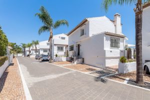 Set within an impressive gated complex of traditional whitewashed Andalusian pueblo-style townhouses, the community offers beautifully maintained communal gardens, a swimming pool, ample guest parking, and open parking conveniently located directly outside the house.