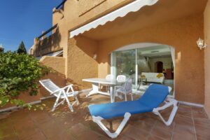 Each of the three generously proportioned bedrooms benefits from its own private terrace, perfectly suited to enjoying the Mediterranean lifestyle. The top-floor suite is particularly impressive, featuring a large private terrace as well as an additional terrace off the landing complete with built-in BBQ and lovely open views across the gardens — ideal for al fresco dining, entertaining, or simply relaxing in the sun.