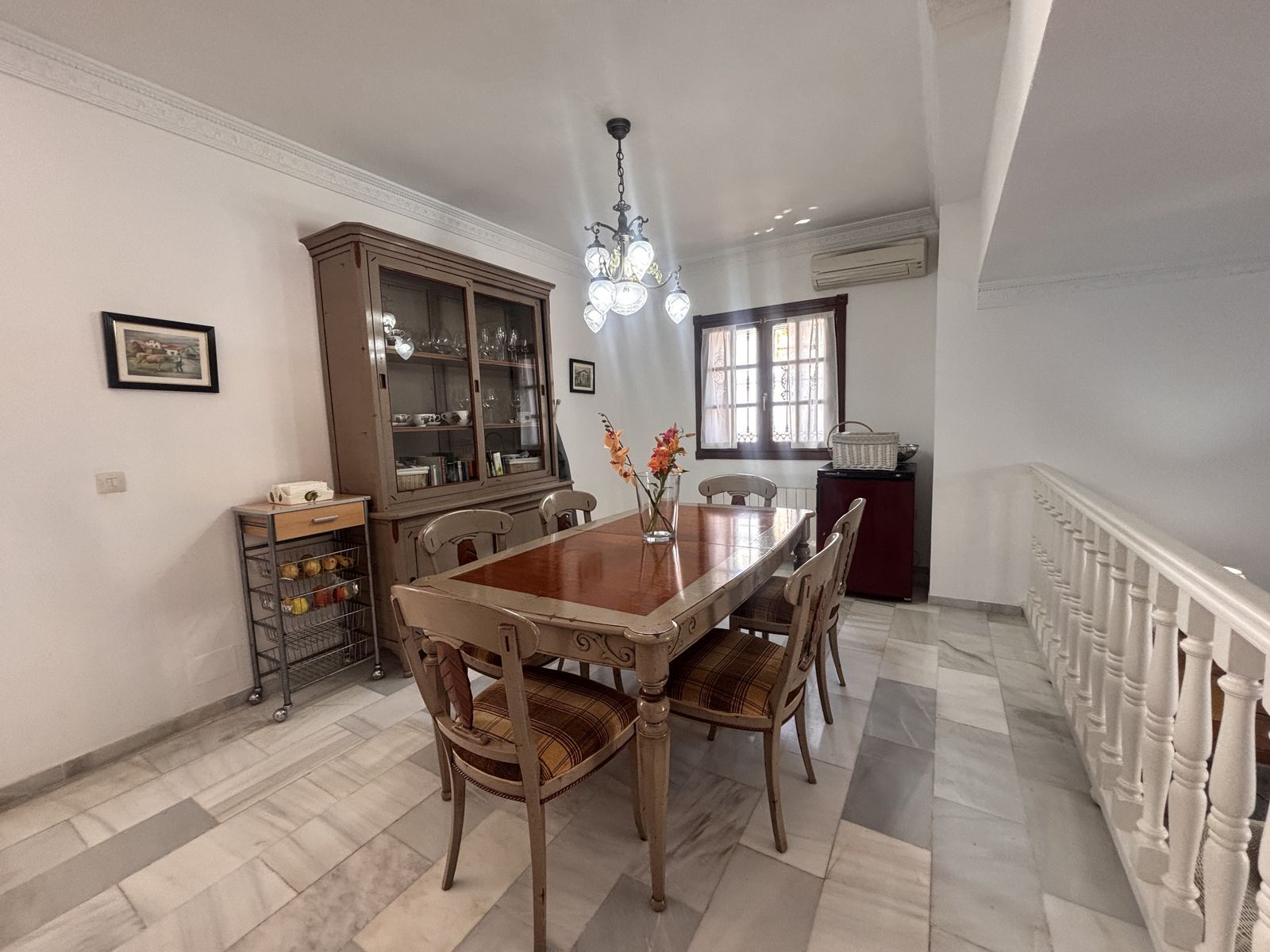 Fantastic opportunity to acquire a semi-detached house with 287 m² built on a generous 460 m² plot, located in the heart of Nueva Andalucía, Marbella, just a short walk from Puerto Banús, approximately 1 kilometre from the beach, and very close to all amenities such as cafés, restaurants, and supermarkets. The property, west-facing and in good condition, offers a comfortable and functional layout. On the main floor, there is a spacious split-level living and dining area, a kitchen with a breakfast nook, a full bathroom, and a wonderful rear terrace ideal for outdoor enjoyment. The first floor features the master bedroom with en-suite bathroom, two additional bedrooms sharing a bathroom, and a balcony with pleasant views. The rooftop solarium offers an open space with the potential to create a fourth bedroom, office, or chill-out area. The basement includes approximately 100 m² with great potential, perfect to convert into an independent apartment, gym, games room or home cinema, and also includes storage space. The house is equipped with air conditioning, built-in wardrobes, a private swimming pool, a garden with a chill-out area, and a parking space included in the price. There is also an additional outdoor area that can be used as an extension of the garden, extra parking, or even for planting a private vegetable garden. This is a fantastic opportunity with plenty of potential and an excellent location in the sought-after Golf Valley of Nueva Andalucía.