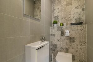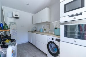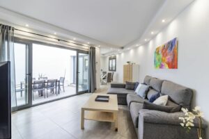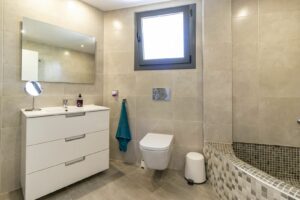 Spanning four levels across 336 m² of built space (250 m² usable) on a 112 m² plot, this south-facing gem—constructed in 2018 and impeccably maintained—boasts innovative design and premium features. The expansive 112 m² open-plan basement, reinforced with a hydrophobic concrete retaining wall for a bunker-like durability, provides versatile space for a gym, cinema, or storage. The ground floor offers 100 m² of elegant living, including a spacious lounge-diner, modern kitchen, a 12 m² private patio, guest cloakroom, and integrated garage. Ascend to the 100 m² first floor, featuring three generous bedrooms—one master with en-suite bathroom and walk-in dressing room—plus additional bathrooms for family comfort. The crowning 25 m² top floor opens to a stunning 70 m² terrace, complete with laundry area, compact kitchen, cloakroom, private swimming pool, solarium, and pergola—perfect for al fresco entertaining amid breathtaking views.