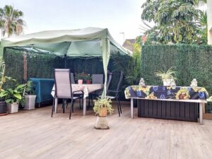 Additional features include individual air conditioning in the living room, elegant marble flooring, and double-glazed windows. The property is situated within a well-maintained, family-friendly urbanization with lush gardens and a communal swimming pool. Well-preserved and move-in ready, this townhouse is an excellent investment in one of Estepona’s most desirable areas.