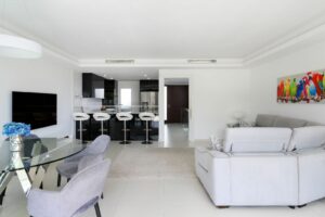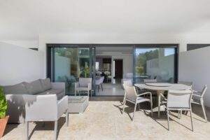 For outdoor entertaining, the property boasts a large private rooftop solarium with a kitchen and BBQ area, providing the perfect setting for al fresco dining and enjoying the Mediterranean sunshine in complete privacy.