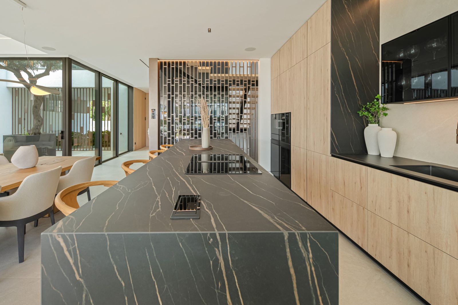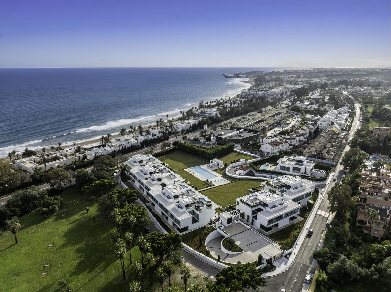 Above it all, the rooftop terrace becomes the setting that quietly defines the home. A private pool runs along the edge with space for dining, lounging and evening gatherings beneath a pergola, opening to views across the Golden Mile and the Mediterranean. Set within a secure boutique community and within walking distance of Puente Romano’s restaurants, beach clubs and promenade, Villa 7 balances privacy with immediate access to Marbella’s most social stretch of coastline.