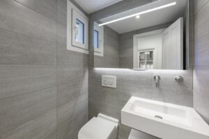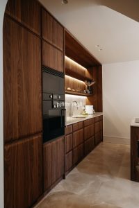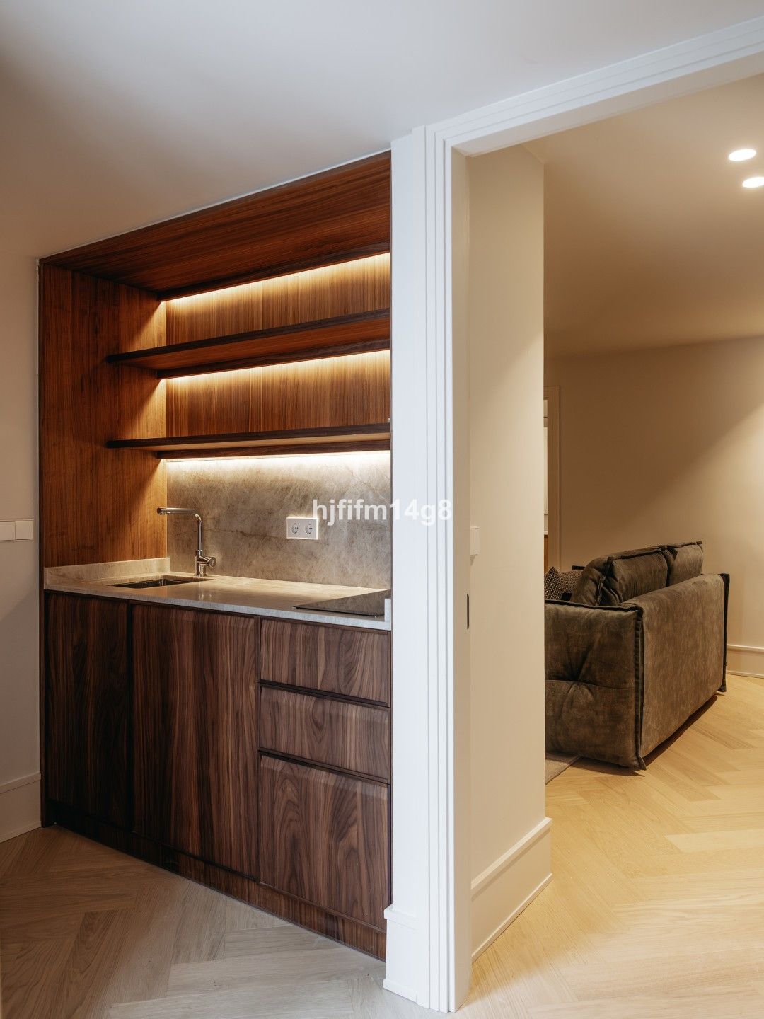 The fully fitted kitchen is very elegant and equipped with high-end appliances. A guest toilet completes this floor.