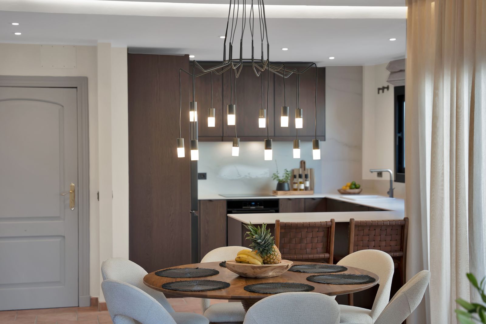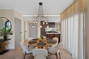 The main floor is designed for living and entertaining. The open-plan kitchen, dining area and living room flow seamlessly into one generous space, extending further onto the terrace. Together, they create a large and welcoming entertaining area — perfect for hosting family dinners, summer gatherings or relaxed evenings with friends.