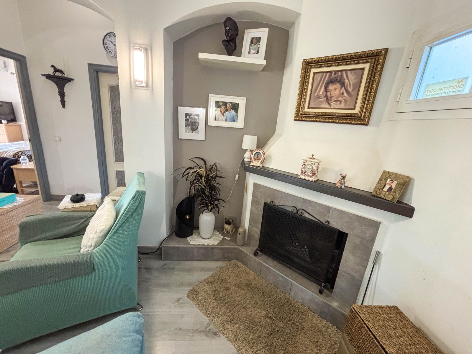 Access to the property is via an electric gate, leading to a spacious parking area with room for several vehicles, part of which is covered. Upon entering, you are welcomed by a well-maintained mature garden with lawn and a variety of flowers, creating a pleasant and private setting.