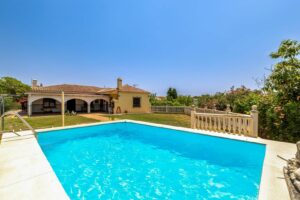 Villa in Selwo with a built size of 264 m2 in a plot of 3,500 m2 distributed in 2 floors. Cuenta con 3 bedrooms,3 bathrooms,1 living room,1 kitchen,facing South