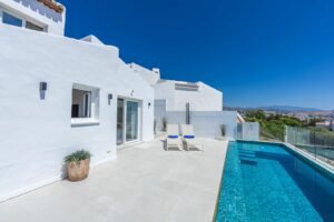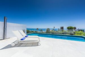 Modern and elegant villa with extraordinary panoramic views of the sea, the mountains, Gibraltar, and Africa, located in a privileged area with direct access to beautiful beaches via a convenient footbridge or an easy underground tunnel. This property is part of a unique architectural complex designed by renowned European architect Aubrey David, widely awarded for his innovative and aesthetic approach. Set within a well-established and meticulously maintained residential community, it offers access to six communal swimming pools, mature gardens, a gym, and a tennis court. Each villa in the complex features a unique design and layout, adding to the exclusive character of the community. The villa enjoys an excellent location, just a short drive from Estepona, La Duquesa, and Sabinillas, and well connected to Sotogrande, Marbella, Gibraltar, and Málaga Airport. All essential services, supermarkets, schools, and the new hospital are conveniently close, just 2 km away. Ideal for golf enthusiasts, the property is next to Estepona Golf and close to prestigious courses such as Finca Cortesin. Facing southeast and recently renovated, the villa retains its charming original rustic style. It is laid out over several levels, allowing for an abundance of natural light through its many windows. The home features several terraces with different orientations, a private pool, and a spacious covered parking area. Holiday rentals are allowed, with a 20% supplement applied to the community fee. A property full of character, charm, and an unbeatable location. Highly recommended for viewing.