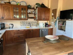 3 bedrooms and 3 bathrooms, kitchen, porch, and garden.