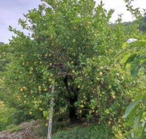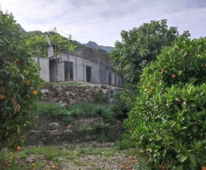 – Carob, plum, almond trees, a fig tree, grapevine, and a cultivated vegetable garden