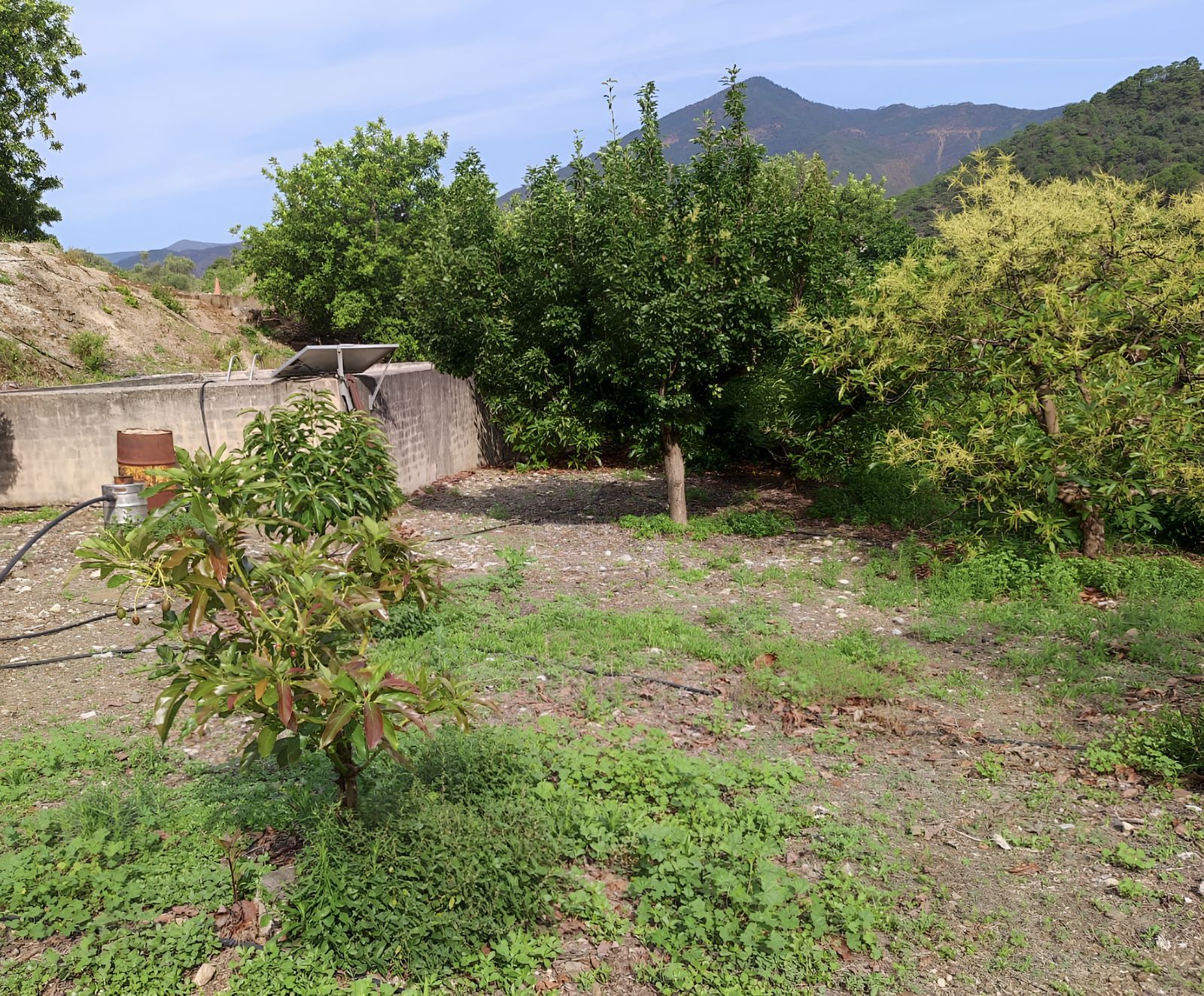 – Carob, plum, almond trees, a fig tree, grapevine, and a cultivated vegetable garden