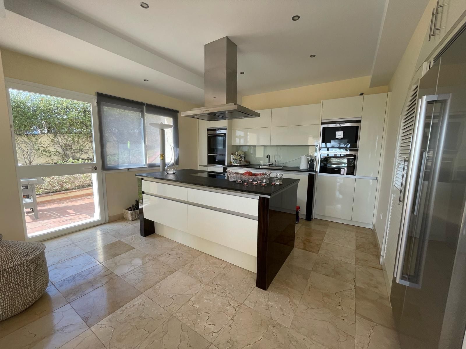• Open-plan German kitchen by ALMILMÖ, fully equipped with a central island and breakfast area