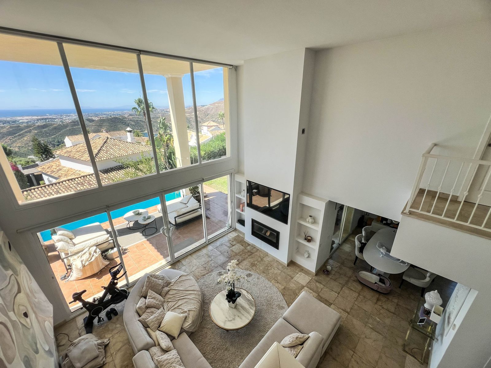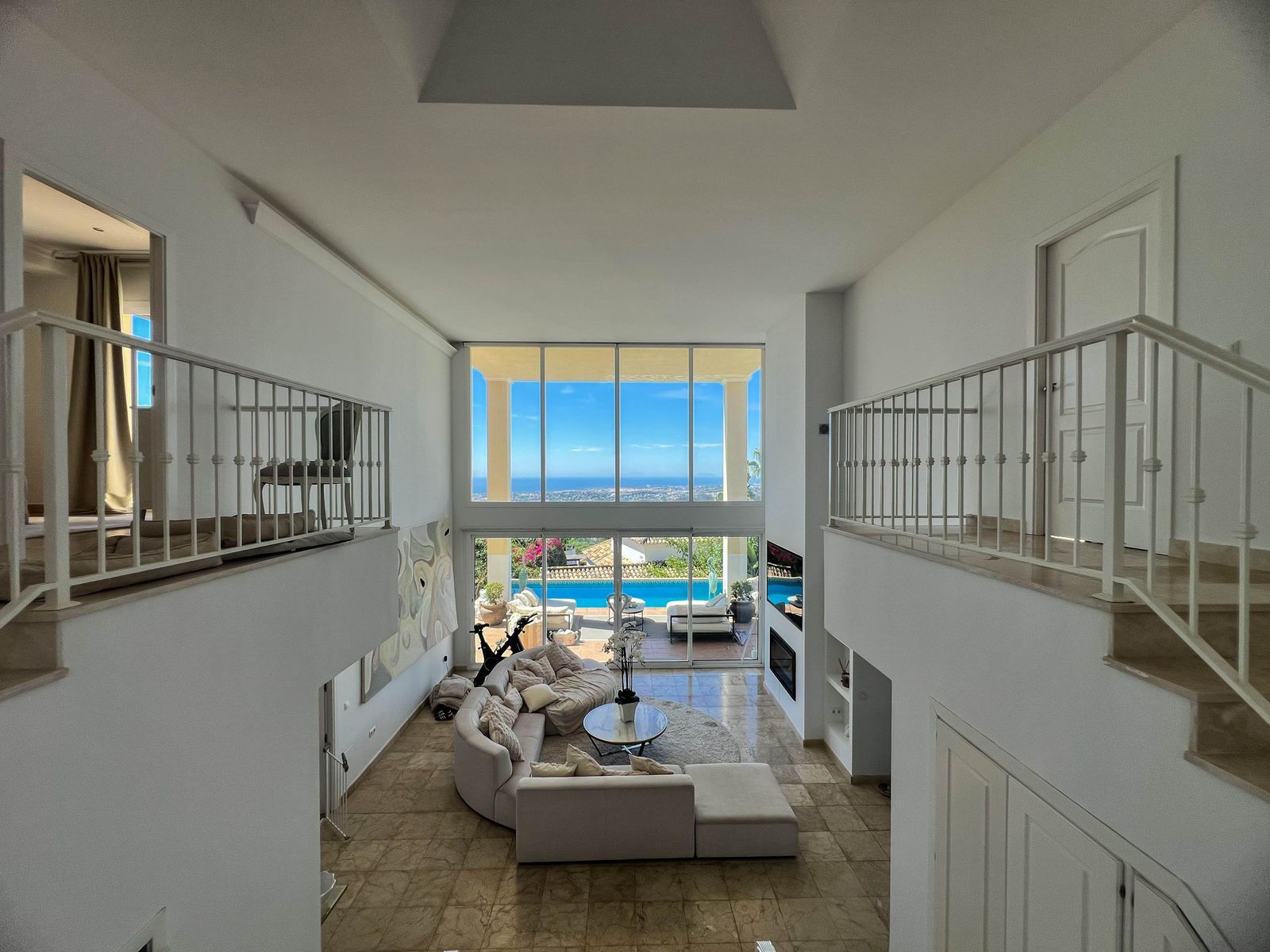 With 349 m² built, this villa impresses from the moment you step in: a stunning living room with 6-meter-high ceilings, expansive windows, and exceptional natural light that enhances its elegance and spaciousness.