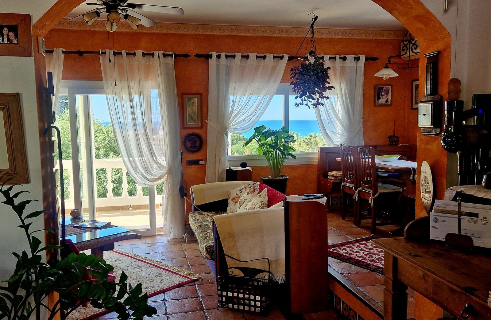 CHARMING VILLA JUST MINUTES WALK TO LA CALA VILLAGE!! Set in an elevated position above La Cala de Mijas, this charming villa enjoys panoramic sea views and a sunny south to southwest orientation. The property combines a characterful main residence—offering two bedrooms, two bathrooms, and a dressing room—with a self-contained guest apartment on the lower level, complete with its own kitchen and bathroom. Inside, the layout is both spacious and practical, with bright living areas, a separate dining room, and a well-sized kitchen upstairs, while the bedrooms below benefit from naturally cooler temperatures during summer. Expansive terraces on both levels create ideal spaces for relaxing or entertaining, while a private pool and sheltered sun terrace provide a high level of privacy, further enhanced by the green zone directly in front. Additional highlights include double glazing, solar energy for hot water and electricity, high-speed internet, and off-road parking in a peaceful cul-de-sac, all within easy walking distance of the village and local amenities. The home is offered fully furnished, ready for immediate occupancy.