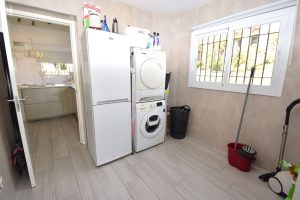 Rarely available single level villa, perfect as a holiday home or a permanent residence. Located in one of the first communities built around La Cala, currently with no restrictions on short term holiday rentals. The property was completely renovated by the present owners in 2016 and is distributed as follows; entrance hall with TV lounge and fireplace on your left as you enter the property. In front of you is the welcoming dining area and to the right you have the fully fitted open plan kitchen. An abundance of natural light flood this area thanks to the large, modern windows and behind the kitchen you have the spacious utility room with washing machine, dryer and access to the rear drying terrace and garden. In front of the kitchen you have the hallway that leads to all three double bedrooms, each with individual hot and cold air conditioning, the master bedroom with an ensuite shower room and the second shower room services both guest bedrooms. The villa is located in a fenced, corner plot which is mostly laid to lawn with a variety of flowers, hedge rows and bushes throughout the garden. The communal swimming pool and children's pool are just a couple of minutes walk away in the centre of the community and, like the villa itself, benefit from all day sun.