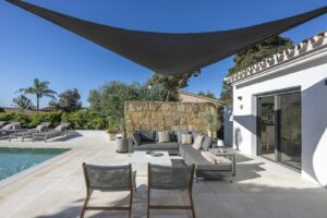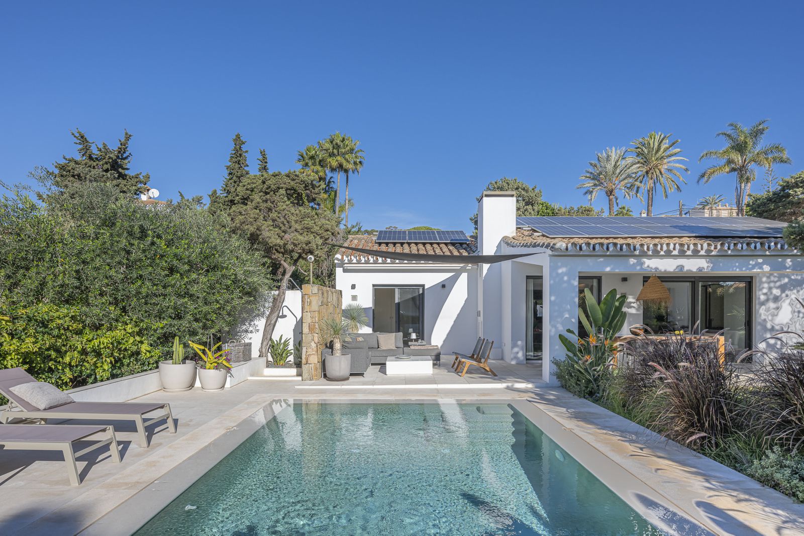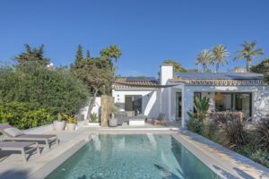 Stunning single-story villa located in the tranquil and sought-after area of Marbesa, East of Marbella. This beautifully designed property features three bedrooms plus an office space, making it ideal for both relaxation and productivity. The villa underwent a complete refurbishment in 2010, meticulously carried out by an internationally highly respected architect. His vision successfully fused classic Spanish architecture with contemporary sophistication, resulting in a home that is both stylish and functional.