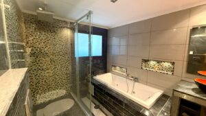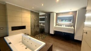 Ascend to the upper level, where you’ll find a sophisticated third bedroom with an en-suite bathroom, offering a peaceful and private space. This floor also provides access to a spectacular rooftop solarium, where you can soak in stunning panoramic views and enjoy additional outdoor space for relaxation, sunbathing, or entertaining under the open sky.