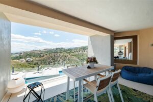 This super modern, spectacular, and unique 4-bedroom luxury apartment is now for sale in Olivos, la Quinta, Benahavís. The apartment is exceptionally large, as it was bought off-plan and combines two separate apartments (one with 3 bedrooms and one with 2 bedrooms) into one expansive living space. This unique layout provides generous room sizes and a vast terrace area. It features 4 bedrooms and 4 bathrooms, offering a perfect fusion of nature, tradition, and modern design. The apartment boasts breathtaking panoramic views of the entire region, including the sea, golf courses, mountains, and the La Concha peak, and is south to south-west facing to maximize natural light.