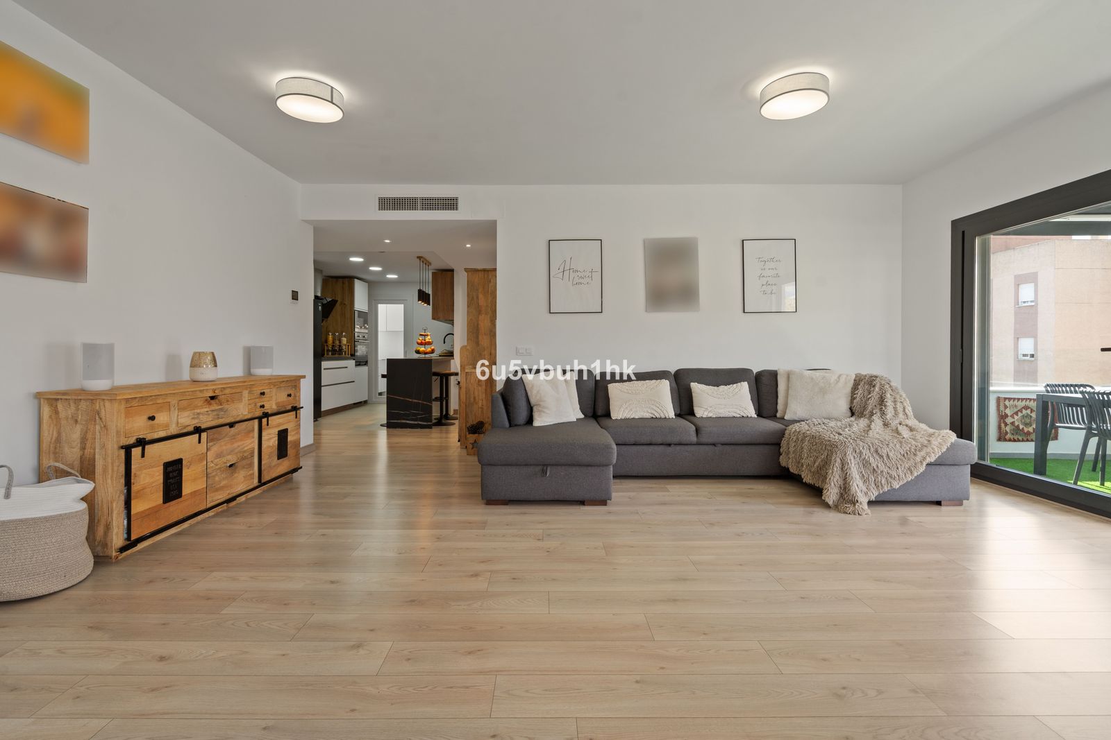 The home offers 149.59 m² built and 121.27 m² of usable interior space, complemented by a spectacular private rooftop terrace of approximately 60 m², designed to fully embrace the Mediterranean lifestyle. The spacious living room, filled with natural light, opens onto a pleasant terrace, while the open-plan kitchen by Schmidt Kitchens, equipped with top-brand appliances and a Quooker system, perfectly blends design and functionality.
