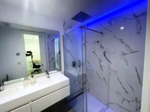 Ground floor apartment in new urbanization, 4 bedrooms, 3 bathrooms, luxurious view of Estepona and the sea, large glazed terrace with access to the lawn. Guaranteed absence of any frontal development. Two parking spaces. Large storage room with direct access from the landing where the elevator and neighboring apartments are located. Full air conditioning, washing machine and dryer. Huge built-in refrigerator and freezer. The kitchen is equipped with a stove with an integrated extractor hood. State-of-the-art plumbing. In the inner patio, there is the possibility to build a private winter garden or an additional bedroom. The complex has a huge pool and a sports complex with modern equipment. South-facing orientation. The living room, kitchen, and two bedrooms open onto the terrace. The other two bedrooms have a view of the patio. The apartment includes a laundry room with a boiler, washing machine, and dryer. Year of construction 2025.