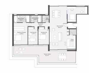 Discover a rare opportunity to own one of the very few 4-bedroom residences in the prestigious Palmitos development, La Quinta. This stunning apartment offers a spacious living room, fully equipped designer kitchen, four bedrooms, two bathrooms, and a guest toilet. Expansive terraces provide breathtaking views of the sea and mountains.