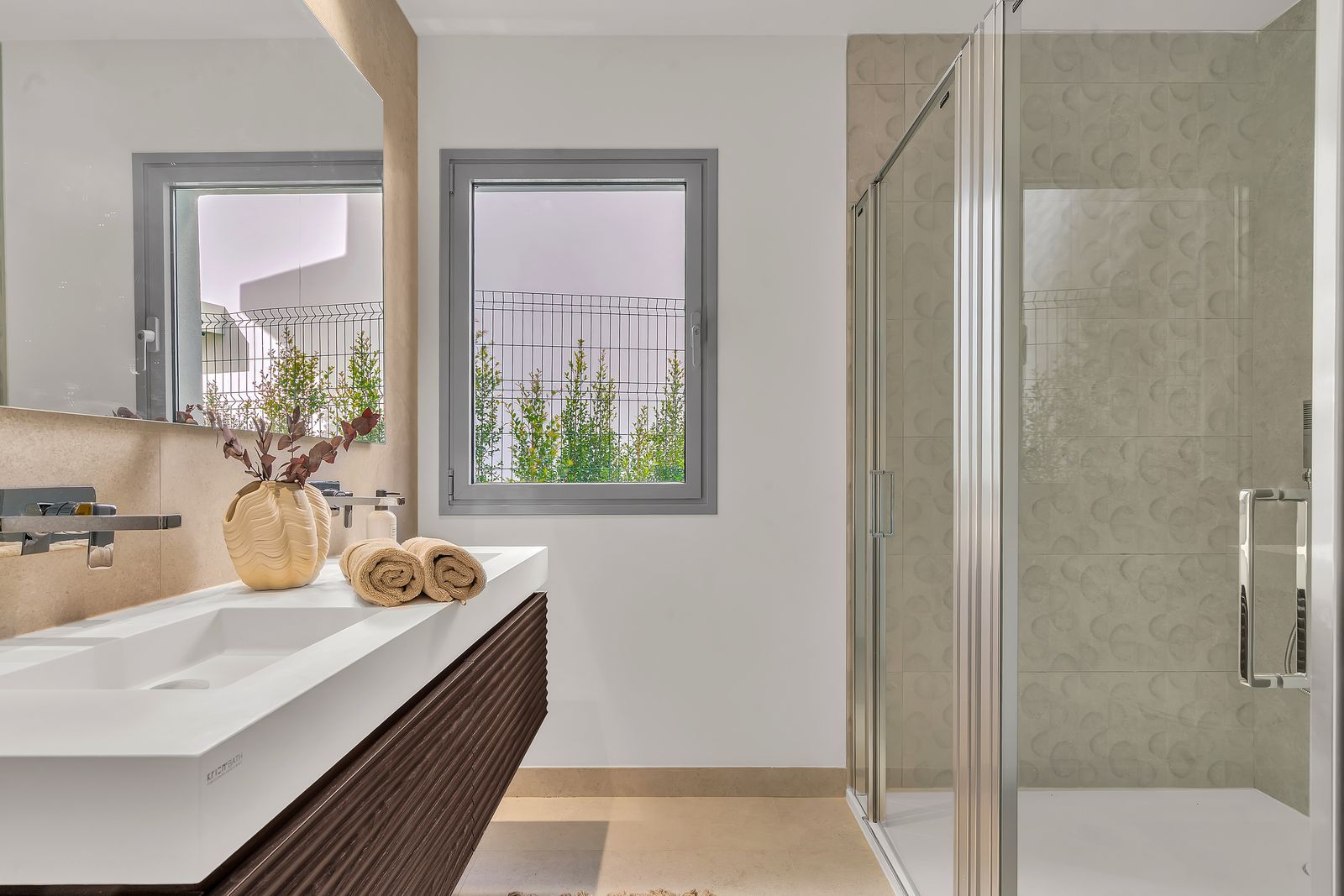 With a total built area of 239 m² and over 250 m² of private outdoor space, this exceptional property combines the comfort and convenience of an apartment with the privacy and space of a standalone villa. Thanks to its south-facing orientation, the home enjoys abundant natural light throughout the day.