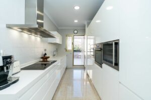 Additional features are double glazed windows, electric blinds, automatic awnings and solar panels. A large storage room and an underground parking with 2 car spaces and a door for the possibility to close it.