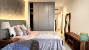 • 1 spacious master bedroom with renovated wardrobes and elegant décor.
