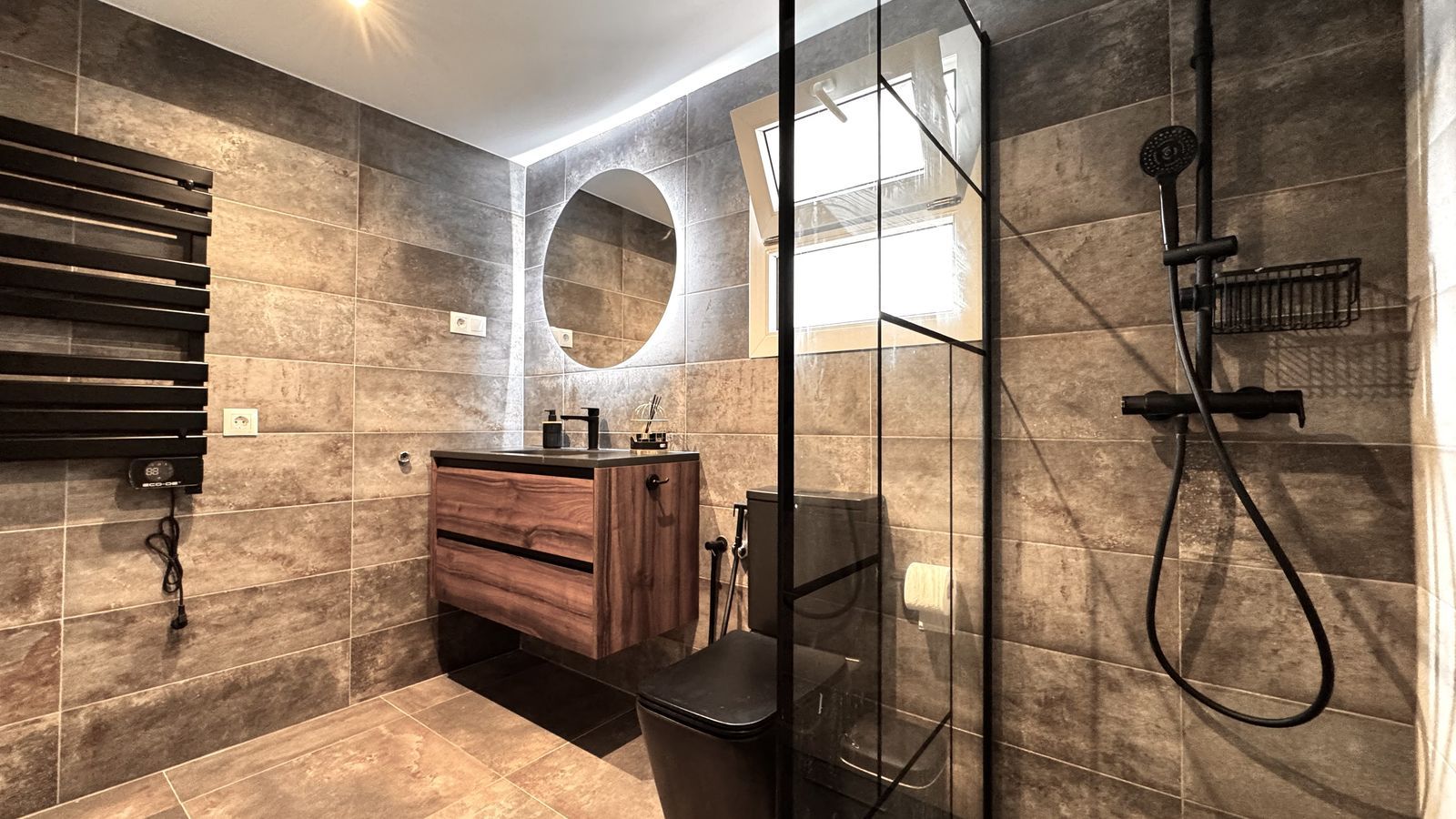 • 2 immaculate bathrooms with contemporary finishes, large walk-in showers, and beautiful wood and stone details.