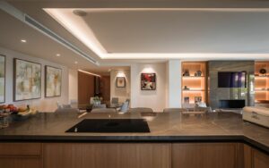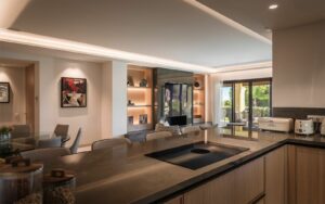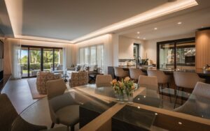 Every detail has been curated for exceptional comfort, including large-format ceramic flooring, fireplace, underfloor heating throughout, Airzone-controlled climate system in every room, full Domotics and built-in Sonos sound system throughout, and an impressive chef’s kitchen with Teppanyaki-style grill and Miele appliances.