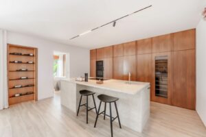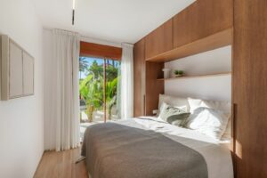 On the first floor you will find an open space living room together with custom made bespoke kitchen. Guest bedroom with the direct access to the garden and the terrace as well as guest bathroom. On the second floor there are 3 bedrooms and all with en suite bathrooms where master bedroom also has its own walk-in closet and private terrace overlooking the pool area. As an added value this apartment also has a laundry room that leads directly to the garage.