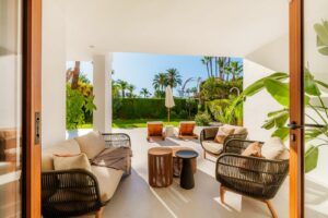 Welcome to this newly renovated duplex ground floor apartment in the heart of Nueva Andalucia, Marbella.