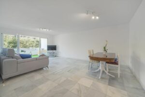 Spacious flat to refurbish in Nueva Andalucia, close to Centro Comercial Plaza and walking distance to Puerto Banus. Discover a unique option! A spacious flat, designed on one floor, which is characterised by its functional and comfortable layout. Upon entering the property, you will be greeted by a spacious entrance hall leading to an independent kitchen fully equipped with appliances and a laundry room. The living-dining room is bright and offers direct access to an enclosed terrace with open views. The flat has four generously sized bedrooms, all of them equipped with fitted wardrobes offering ample storage space. Furthermore, there are two complete bathrooms, some of them en suite. This property has many possibilities for refurbishment.