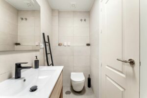 The apartment features four bedrooms and three en-suite bathrooms within 86 square meters of interior space. The open-plan living area is smartly designed to maximise functionality, connecting effortlessly to a generous 61 square meter terrace that serves as an ideal extension of the home. Whether enjoying family meals, entertaining friends, or simply relaxing outdoors, this space enhances the property’s lifestyle appeal. Natural light floods the interiors through large sliding doors, while details such as electric blinds, a fully equipped Balay kitchen, and high-quality finishes add everyday convenience and style.