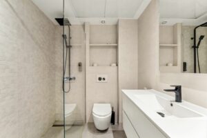 The interiors have been tastefully renovated with a clean, Scandinavian-inspired aesthetic that enhances the apartment’s airy, coastal ambiance. Every detail, from the layout to the finishes, has been thoughtfully considered to maximize comfort while maintaining a sense of modern simplicity.