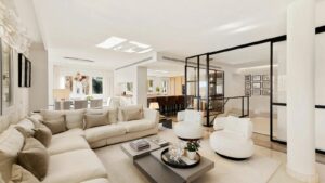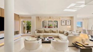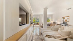 Ground Floor Duplex for sale in Las Cascadas, Marbella with 4 bedrooms, 5 bathrooms and with orientation south/east, with communal swimming pool, private garage (2 parking spaces) and communal garden. Regarding property dimensions, it has 397 m² built and 92 m² terrace. Has the following facilities transport near, air conditioning, fully furnished, fully fitted kitchen, utility room, basement, guest room, storage room, alarm, security entrance, double glazing, video entrance, dining room, security service 24h, guest toilet, private terrace, kitchen equipped, living room, study room, sea view, country view, automatic irrigation system, laundry room, internet – wi-fi, covered terrace, electric blinds, fitted wardrobes, gated community, garden view, pool view, tennis / paddle court, underfloor heating (bathrooms), close to children playground, close to golf, uncovered terrace, games room, glass doors, balcony, excellent condition, recently renovated / refurbished, close to shops, close to town, close to schools and office room.