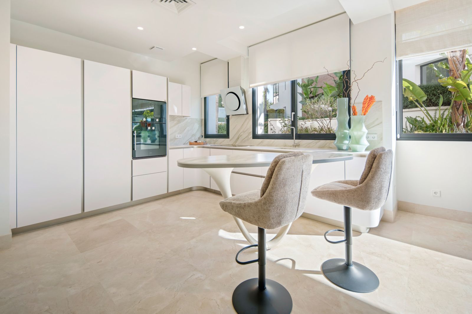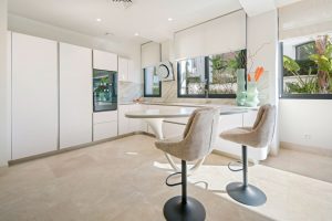 This residence is composed with intent rather than excess. The lower level absorbs activity, a billiards and media lounge, a proper home office, a guest suite, and direct access to the private garage, allowing the principal floor to remain composed and quiet. Upstairs, three en-suite bedrooms, including the master, sit alongside an open kitchen, dining, and living space that opens to the terrace and landscaped grounds. Materials are tactile and enduring: natural marble, timber floors, tailored carpentry, Villeroy & Boch fittings. Technology is integrated rather than displayed: whole-home audio, Technoclima climate control, underfloor heating throughout, and a security concept engineered by Marbejer, supported by perimeter thermal imaging and facial recognition from German manufacturer Mobotix. The result is a home that functions with the assurance of a private residence rather than a staged showpiece.