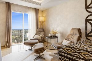 At the top, the solarium is designed for ultimate lifestyle living, offering a private gym, sauna, steam room, jacuzzi, and a stylish chill-out area.