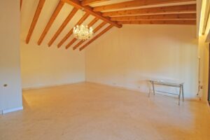 The property is distributed over two floors: the upper floor features a solarium with a private pool. The terrace offers views of the garden and surrounding nature.